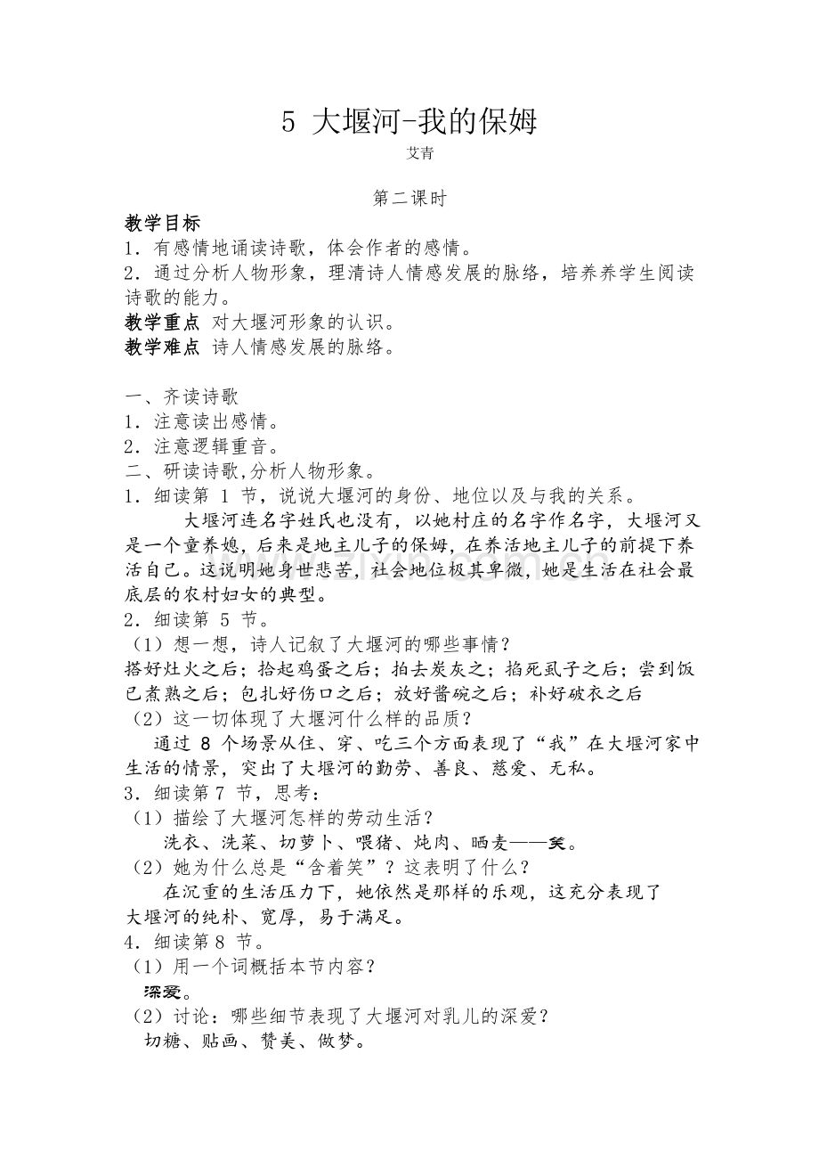 (2)艾青的这首诗仅仅是赞美大堰河一个人的吗?谁能读出诗中的句子?
