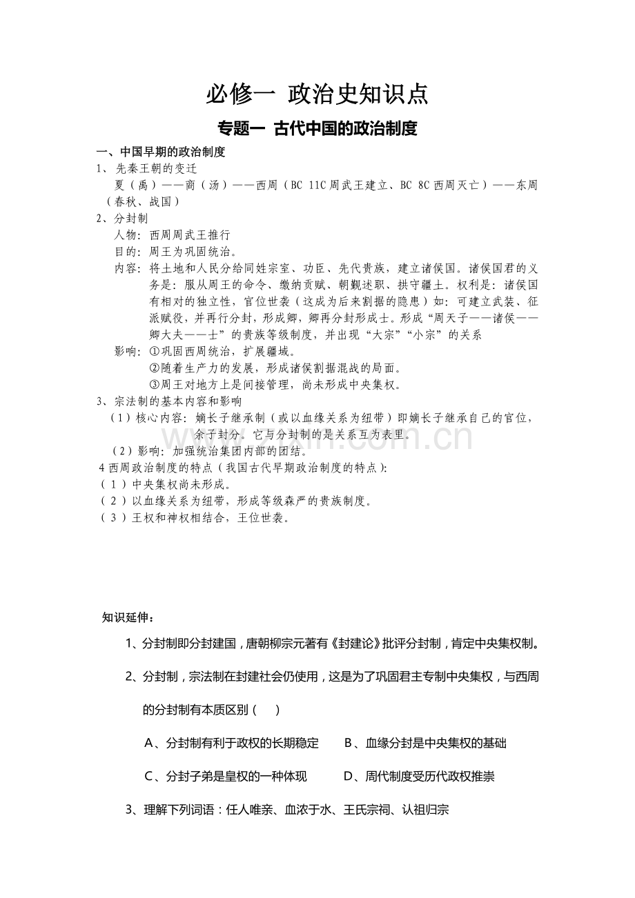 1、分封制即分封建国,唐朝柳宗元著有《封建论》批评分封制,肯定中央集权制。