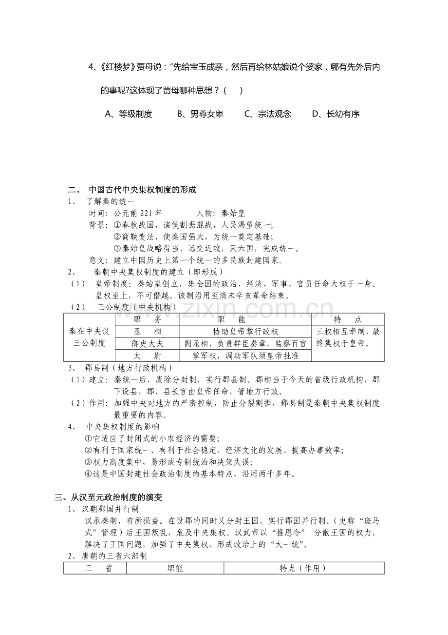 (3)中央集权主要经历了形成——完善——发展到顶峰三个阶段。
