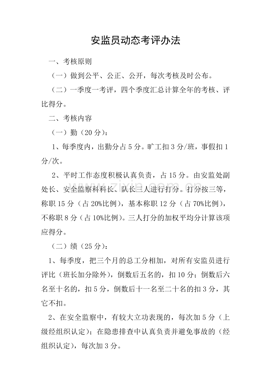 1、每季度,把三个月的总工分相加,对所有安监员进行评比(班长加分除外),倒数后五名的,扣10分;倒数后六名至十名的,扣5分,倒数后十一名至二十名的扣3分,其它不扣。