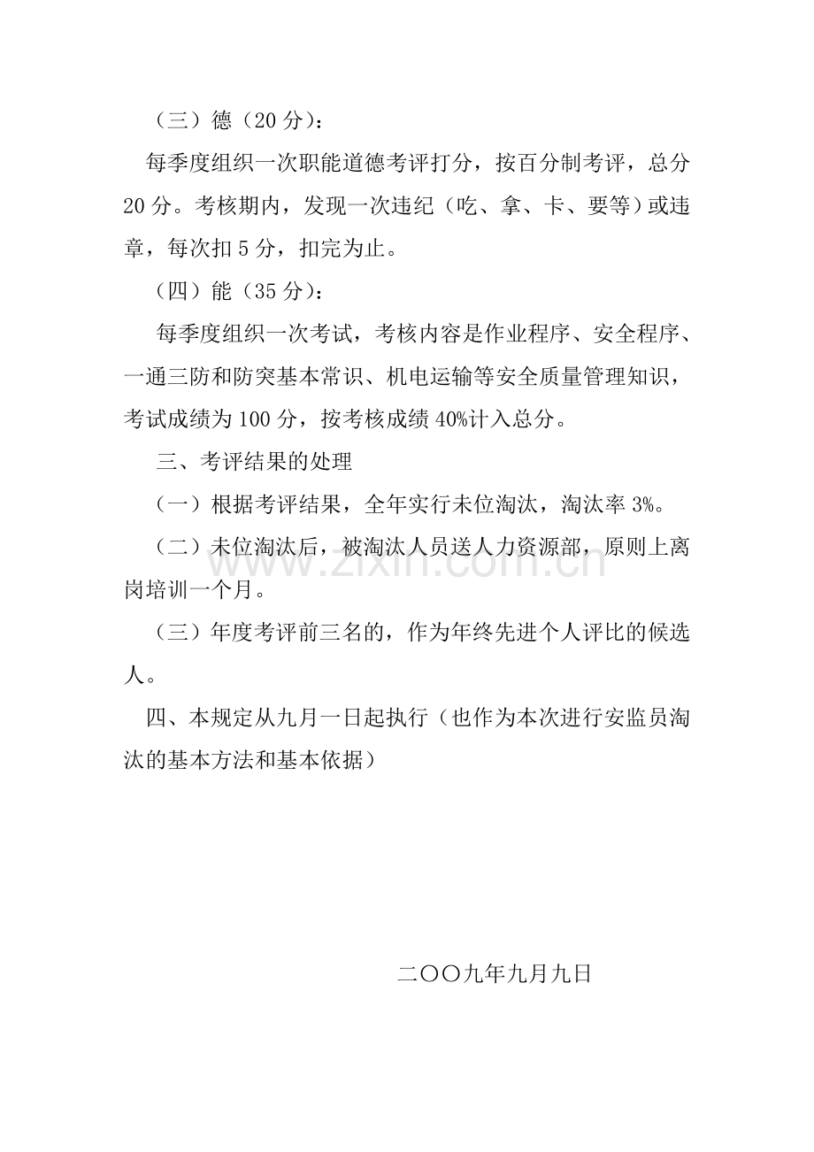 四、本规定从九月一日起执行(也作为本次进行安监员淘汰的基本方法和基本依据)