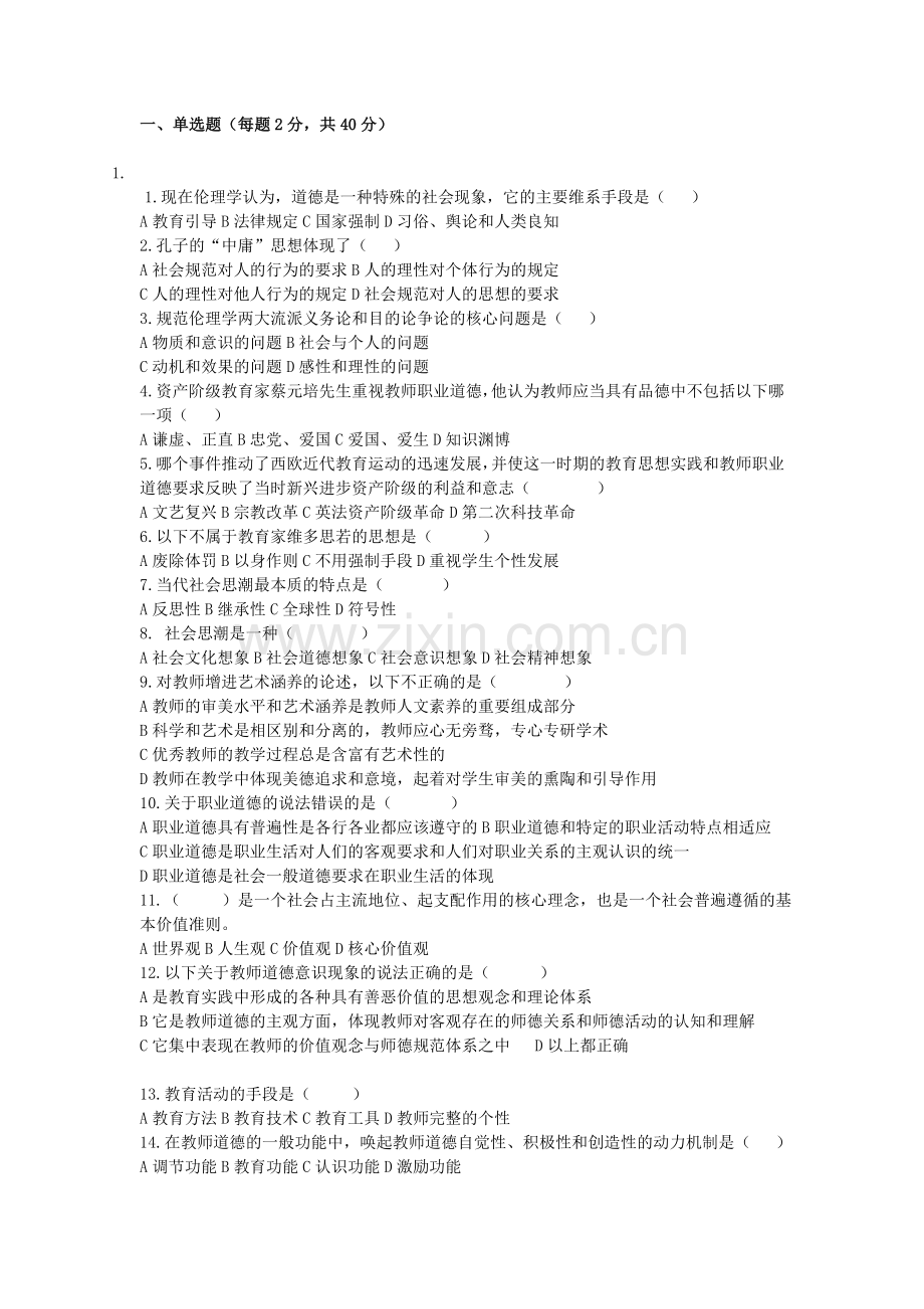 4.资产阶级教育家蔡元培先生重视教师职业道德,他认为教师应当具有品德中不包括以下哪一项( )