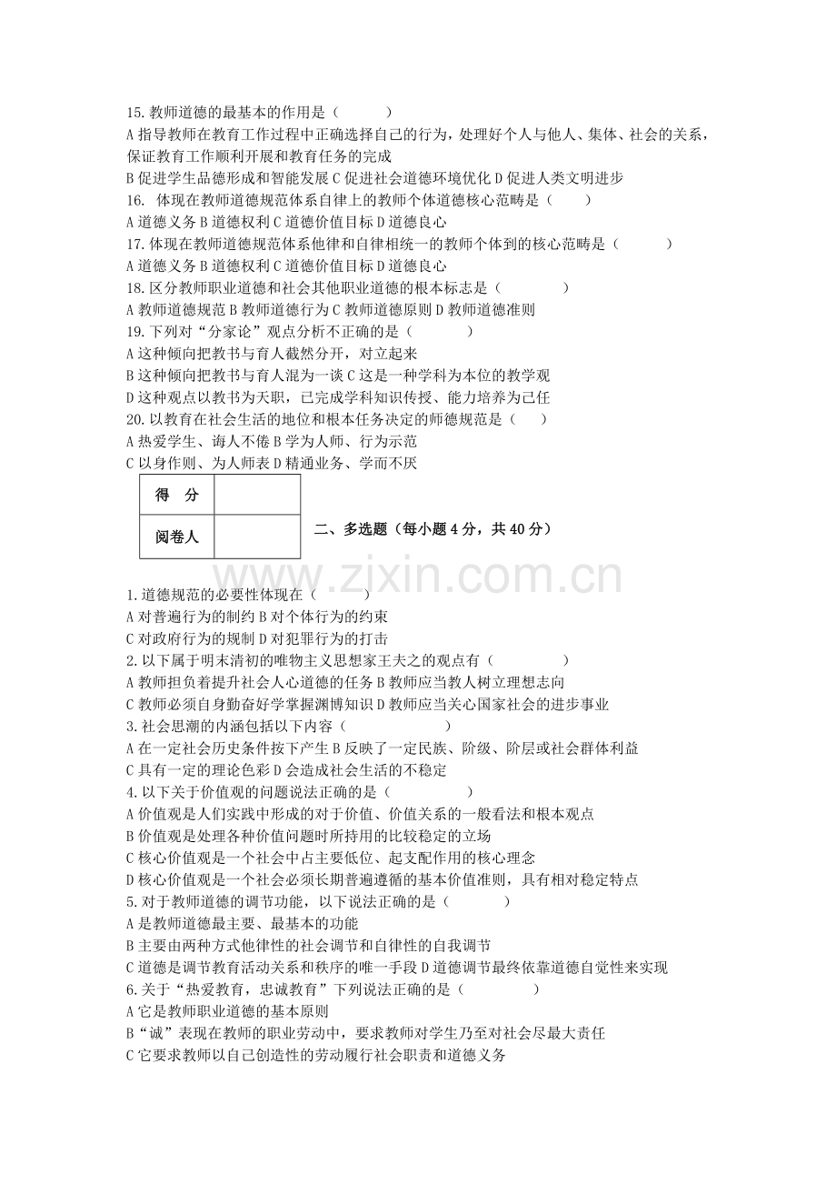 C它集中表现在教师的价值观念与师德规范体系之中 D以上都正确