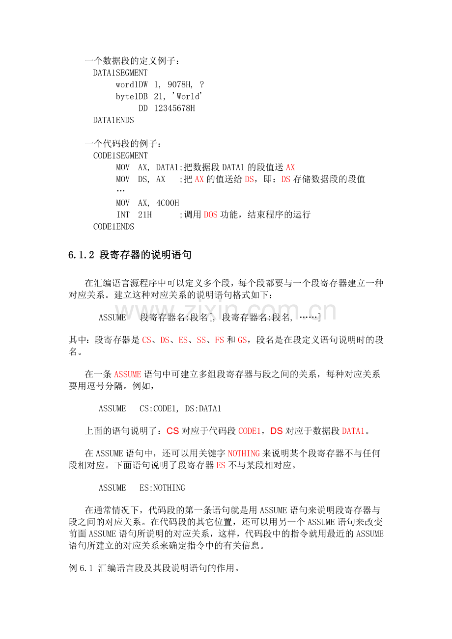 语句(1)和(6)分别说明了段和段寄存器之间的对应关系,其中语句(6)重新说明语句(1)所指定的对应关系。