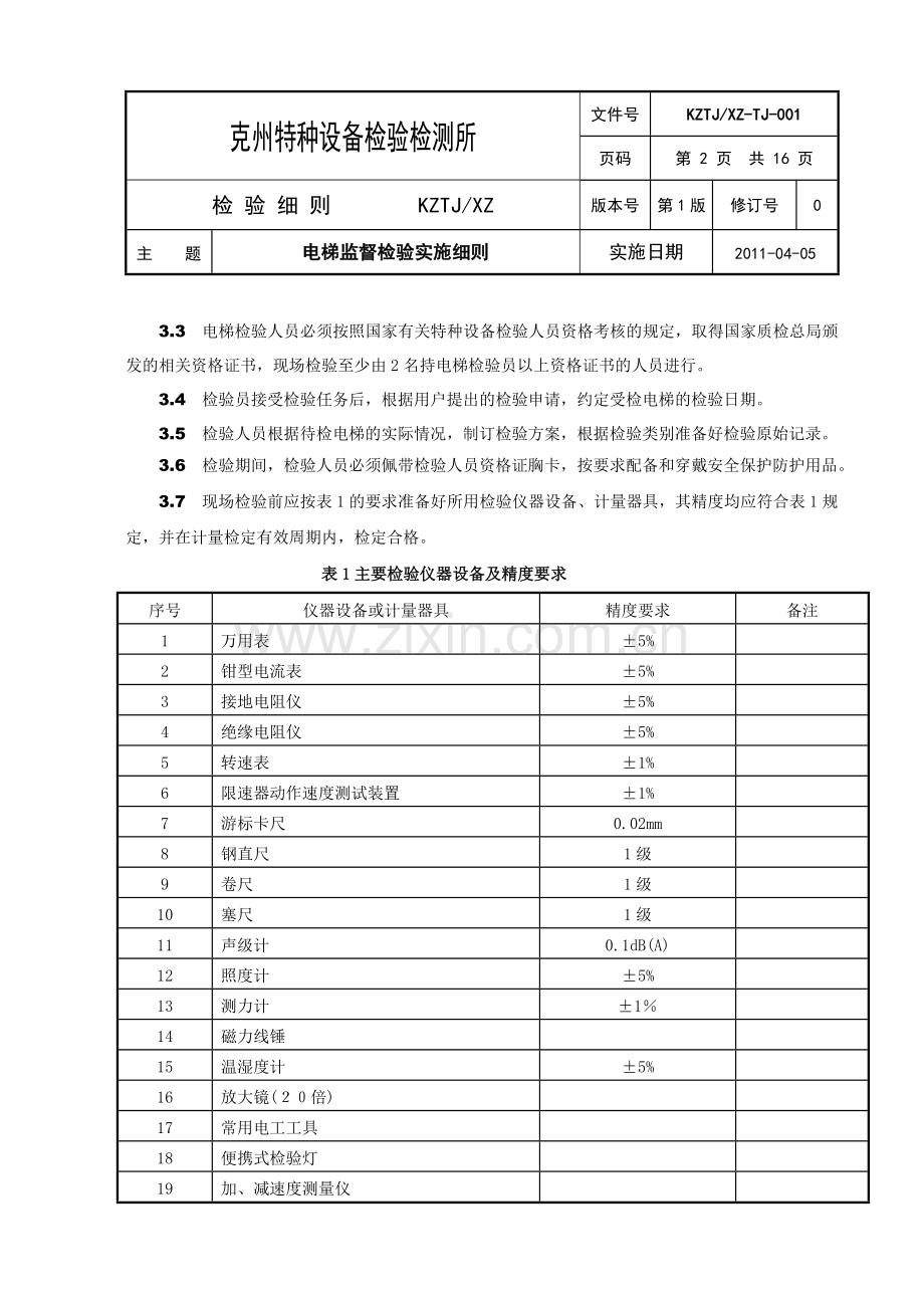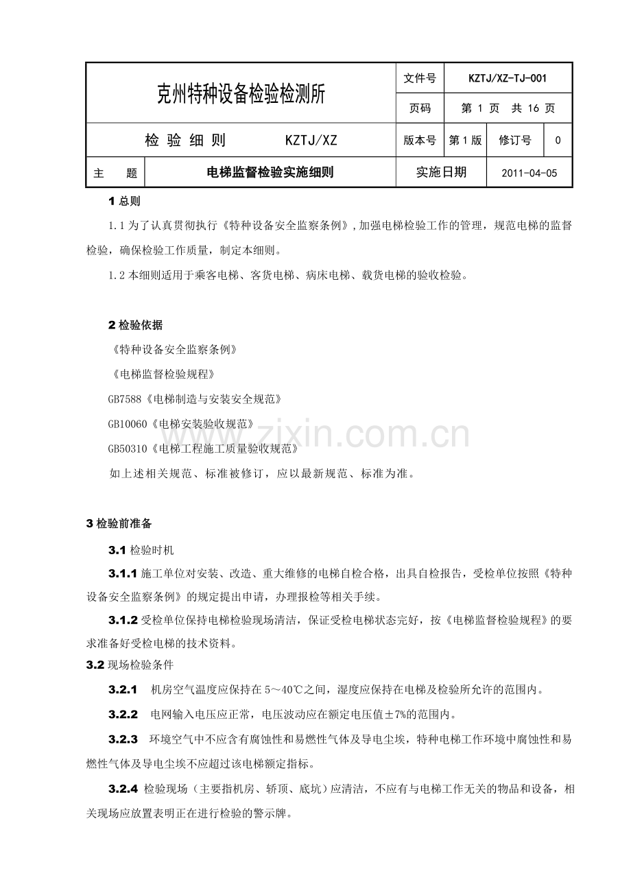 1.1为了认真贯彻执行《特种设备安全监察条例》,加强电梯检验工作的管理,规范电梯的监督检验,确保检验工作质量,制定本细则。