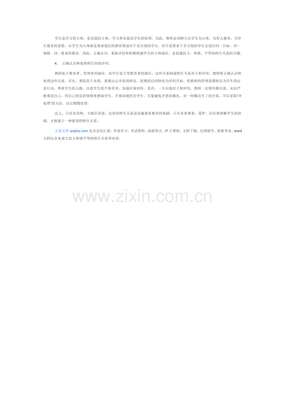 五星文库包含总结汇报、外语学习、考试资料、旅游景点、IT计算机、文档下载、出国留学、资格考试、word文档以及9.建立民主和谐平等的师生关系等内容。