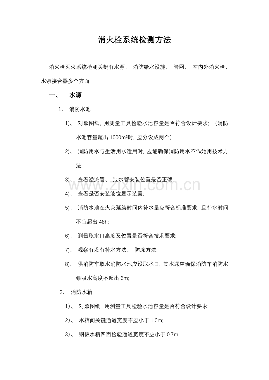 消火栓灭火系统检测关键有水源、 消防给水设施、 管网、 室内外消火栓、 水泵接合器多个方面: