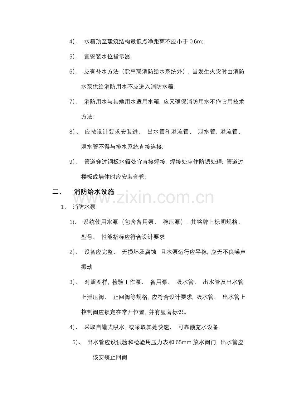 1)、 对照图纸, 用测量工具检验水池容量是否符合设计要求; (消防水池容量超出1000m³时, 应分设成两个)