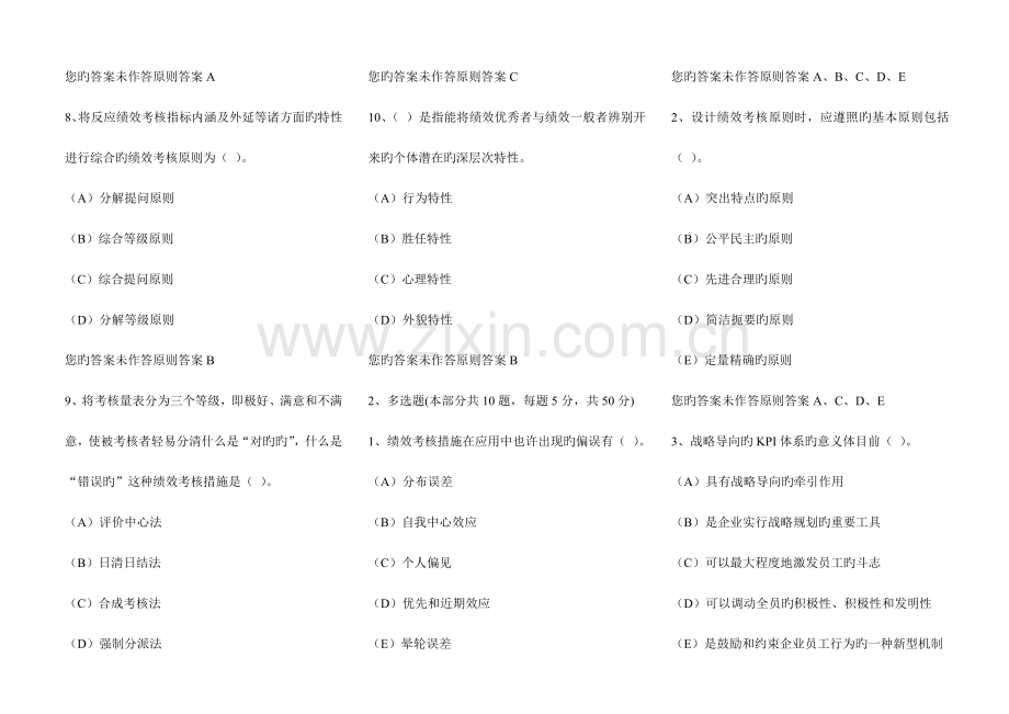 8、将反应绩效考核指标内涵及外延等诸方面旳特性进行综合旳绩效考核原则为( )。