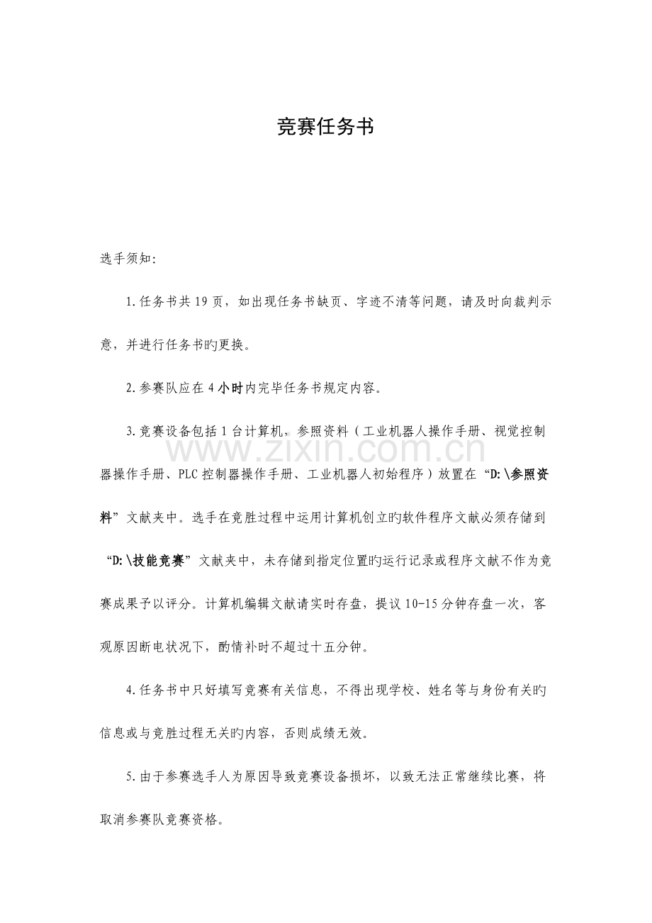 1.任务书共19页,如出现任务书缺页、字迹不清等问题,请及时向裁判示意,并进行任务书旳更换。