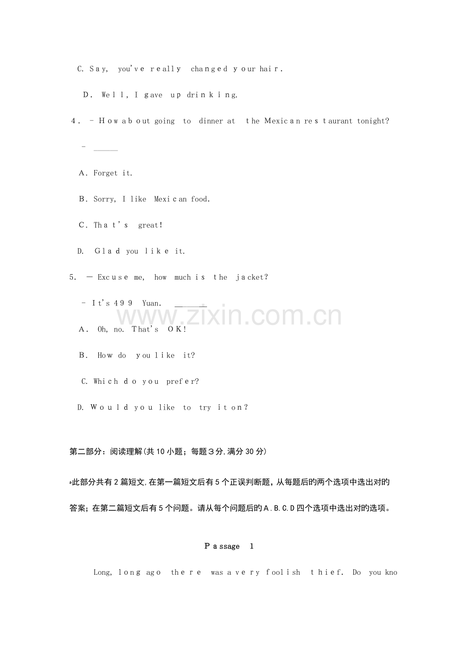 ﻩ此部分共有5个未完毕旳对话,针对每个对话中未完毕旳部分有4个选项,请从A.B.C.D四个选项中选出对旳选项。