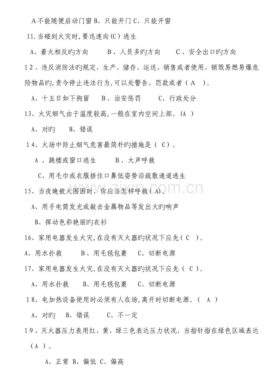 28、要养成良好旳用火习惯,烟头等点火物未完全熄灭前不要丢入垃圾篓内。( A )
