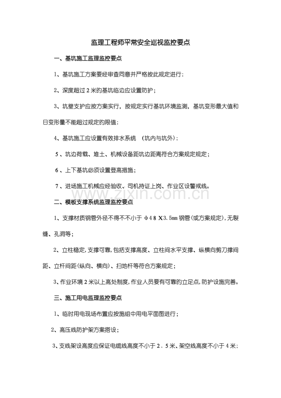 监理工程师平常安全巡视监控要点