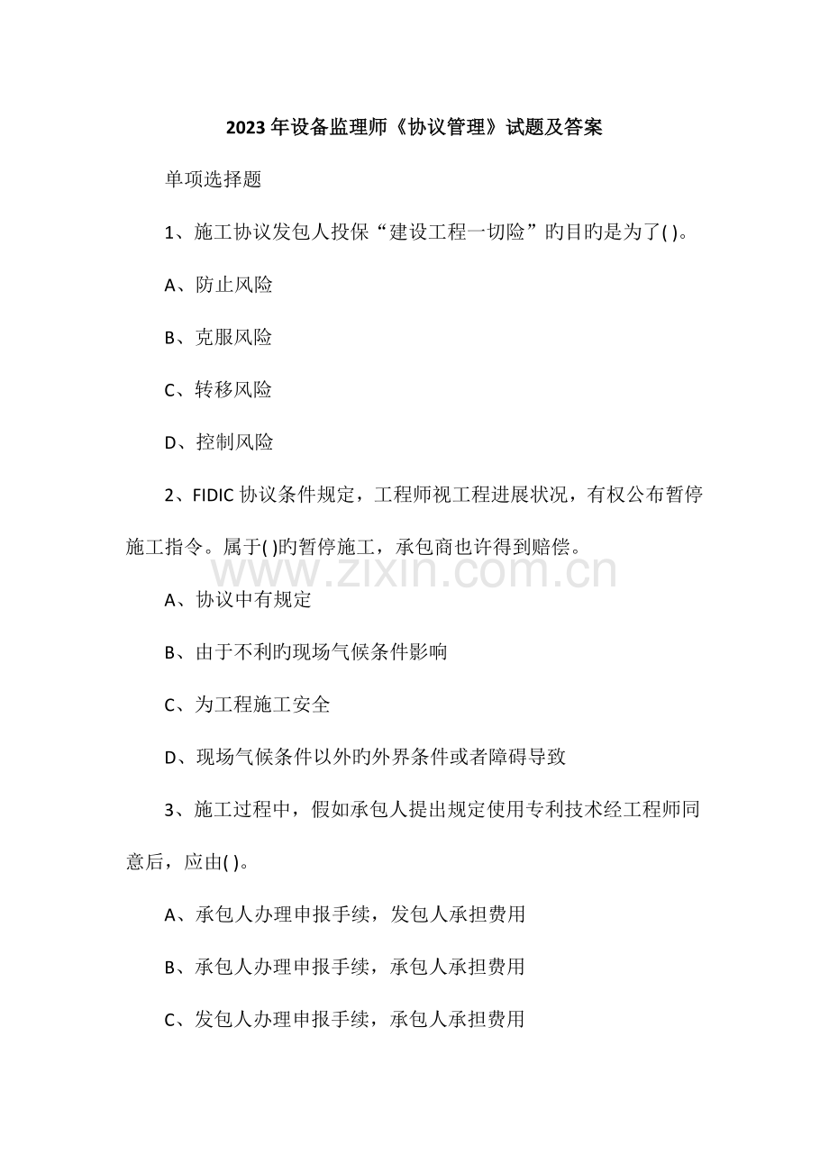 3、施工过程中,假如承包人提出规定使用专利技术经工程师同意后,应由( )。