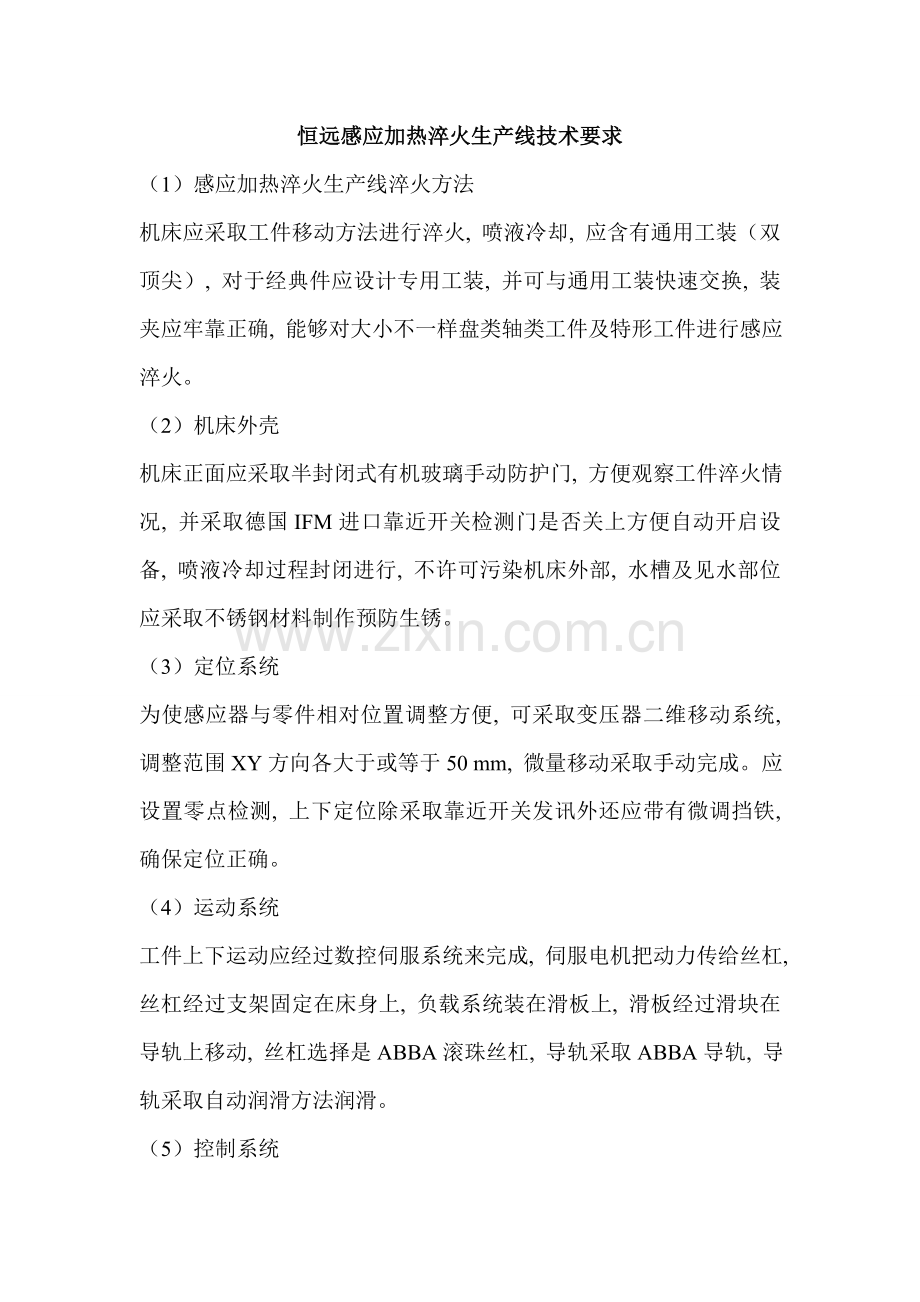 恒远感应加热淬火生产线技术要求