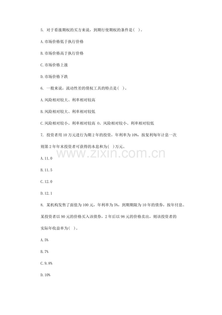 8. 某机构发售了面值为100元,年利率为5%,到期期限为10年的债券,按年付息。