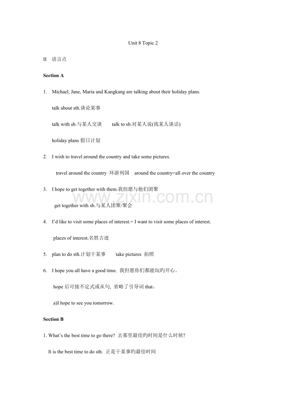 1. Michael, Jane, Maria and Kangkang are talking about their holiday plans.