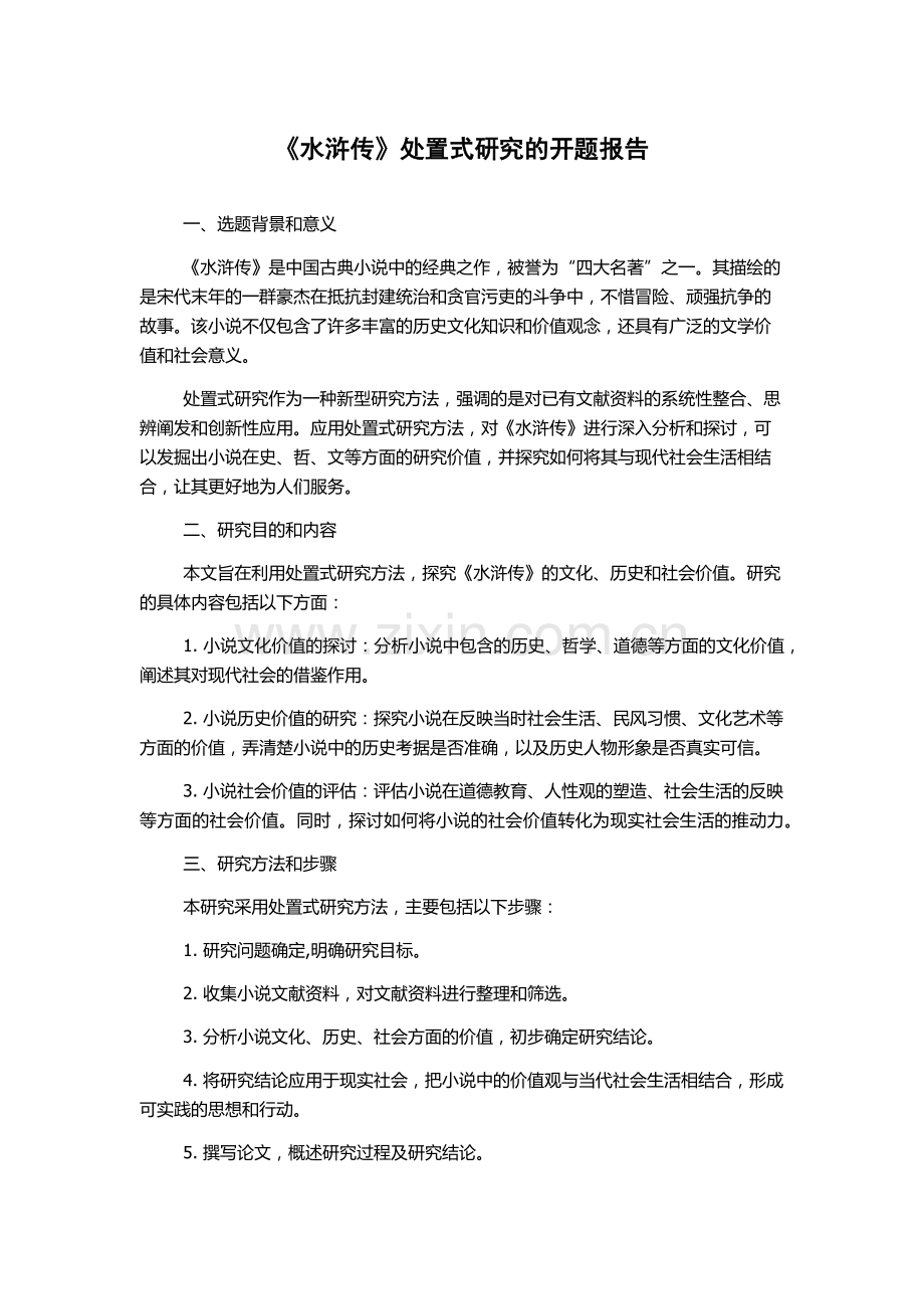本文旨在利用处置式研究方法,探究《水浒传》的文化、历史和社会价值。研究的具体内容包括以下方面: