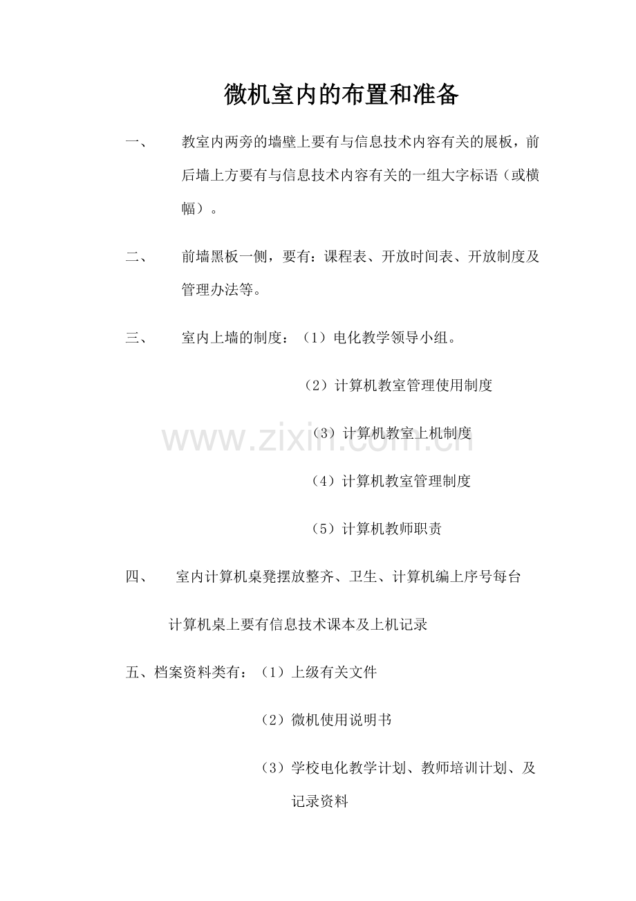 一、 教室内两旁的墙壁上要有与信息技术内容有关的展板,前后墙上方要有与信息技术内容有关的一组大字标语(或横幅)。