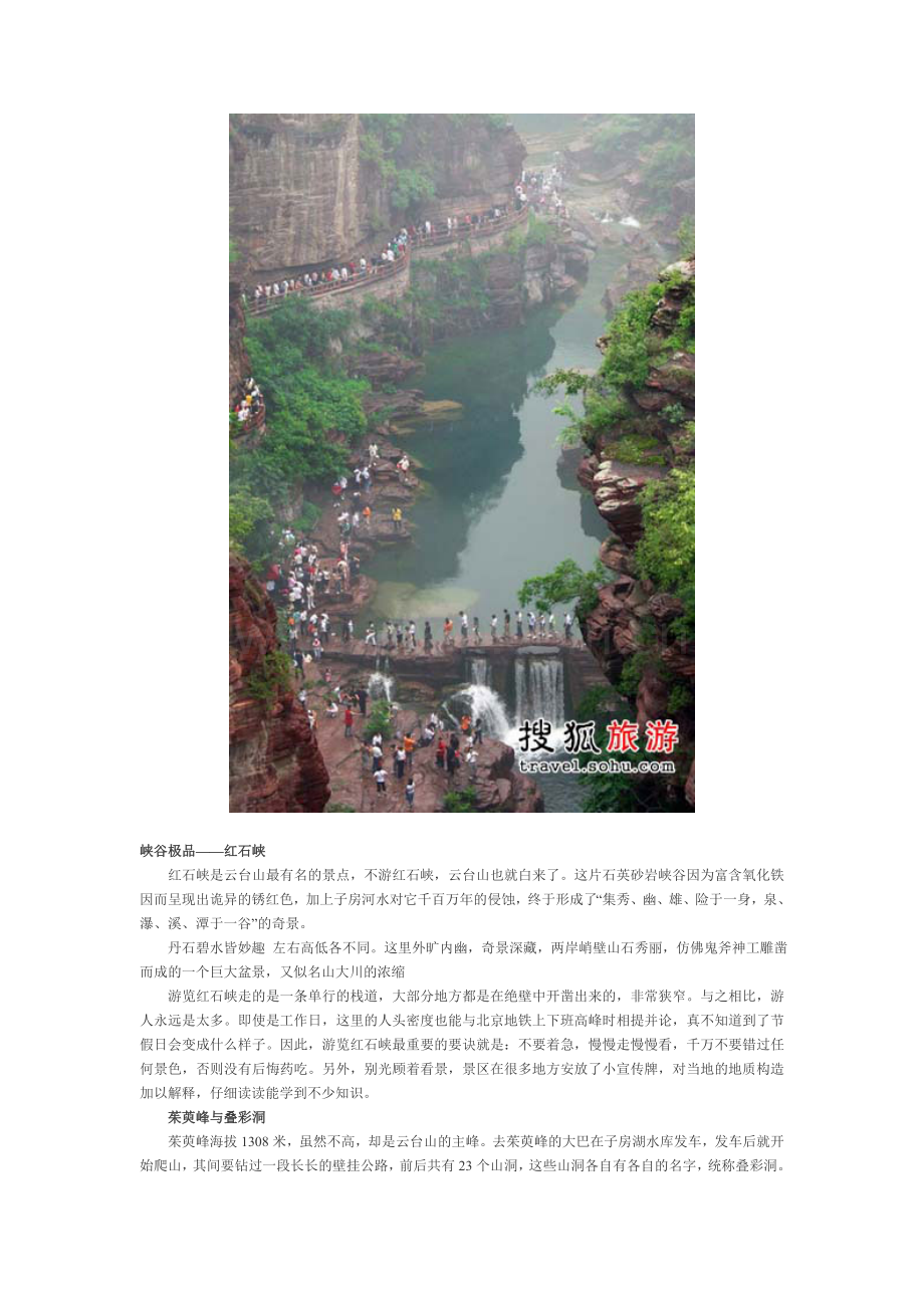 B、上午9:00之后抵达,上午游览红石峡,下午有选择地游览潭瀑峡、泉瀑峡、猕猴谷、地质博物馆,返程。