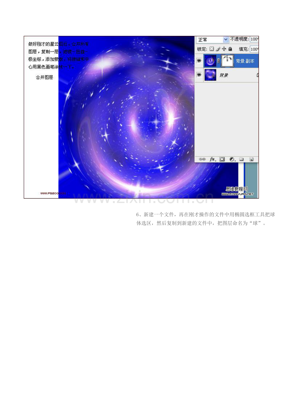6、新建一个文件,再在刚才操作的文件中用椭圆选框工具把球体选区,然后复制到新建的文件中,把图层命名为“球”。