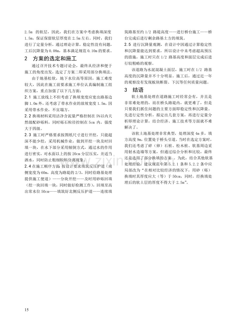 通过召开技术专题讨论会,最终从经济和便于施工的角度出发,选定了方案二即采用部分换填法。