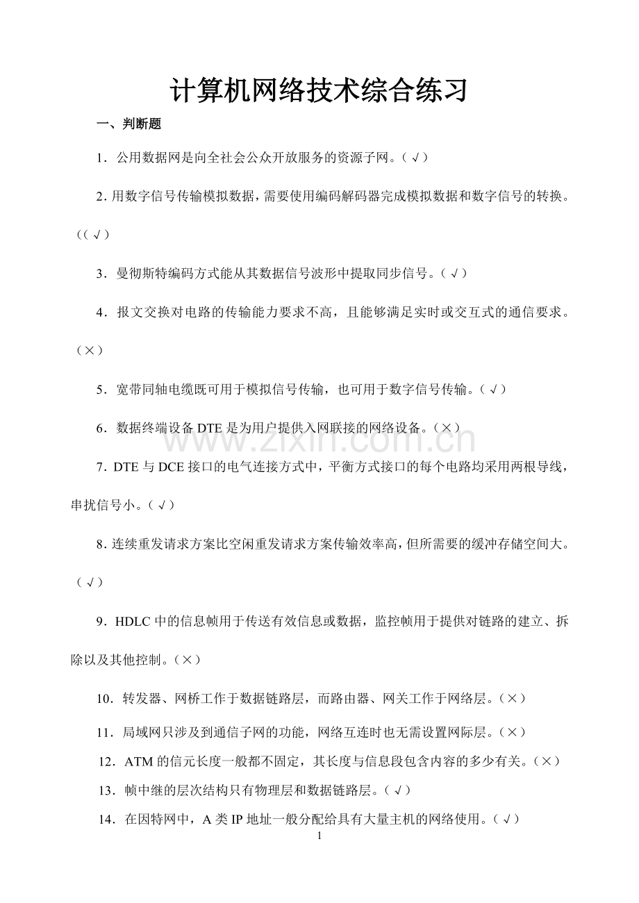 1.公用数据网是向全社会公众开放服务的资源子网。(√)