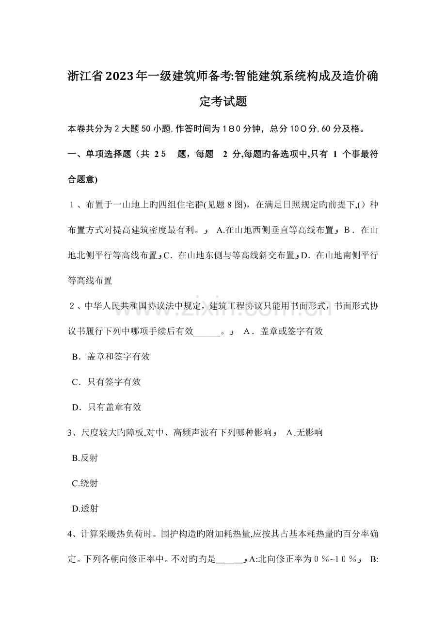 浙江省2023年一级建筑师备考:智能建筑系统构成及造价确定考试题