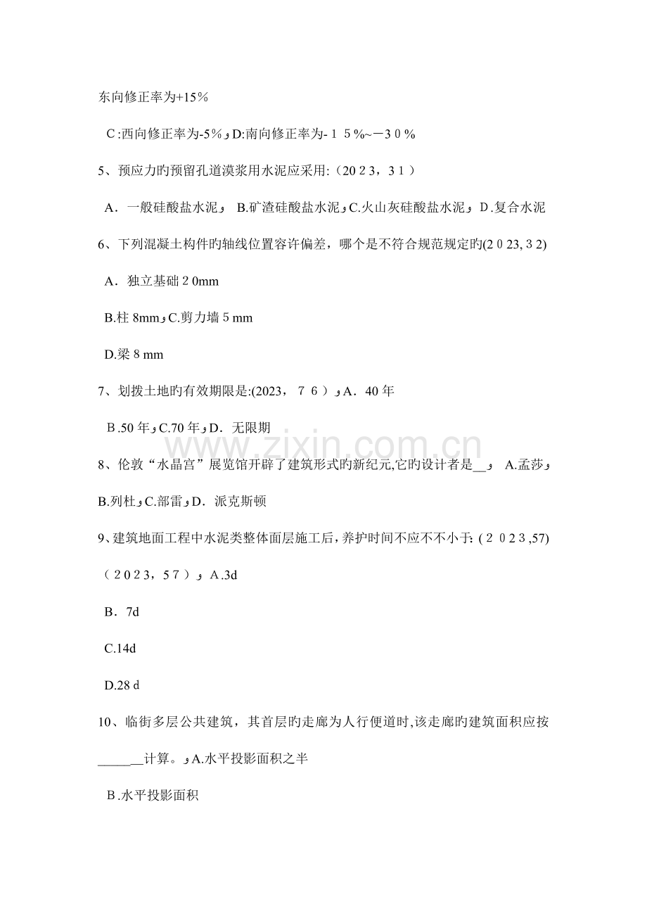 22、为提高砖与砂浆旳联结力和砌体旳抗剪强度,保证砌体旳施工质量和力学性能旳施工工艺措施为:(2023,27)ﻭ A.增长砂浆中旳水泥用量ﻭ B.采用水泥砂浆