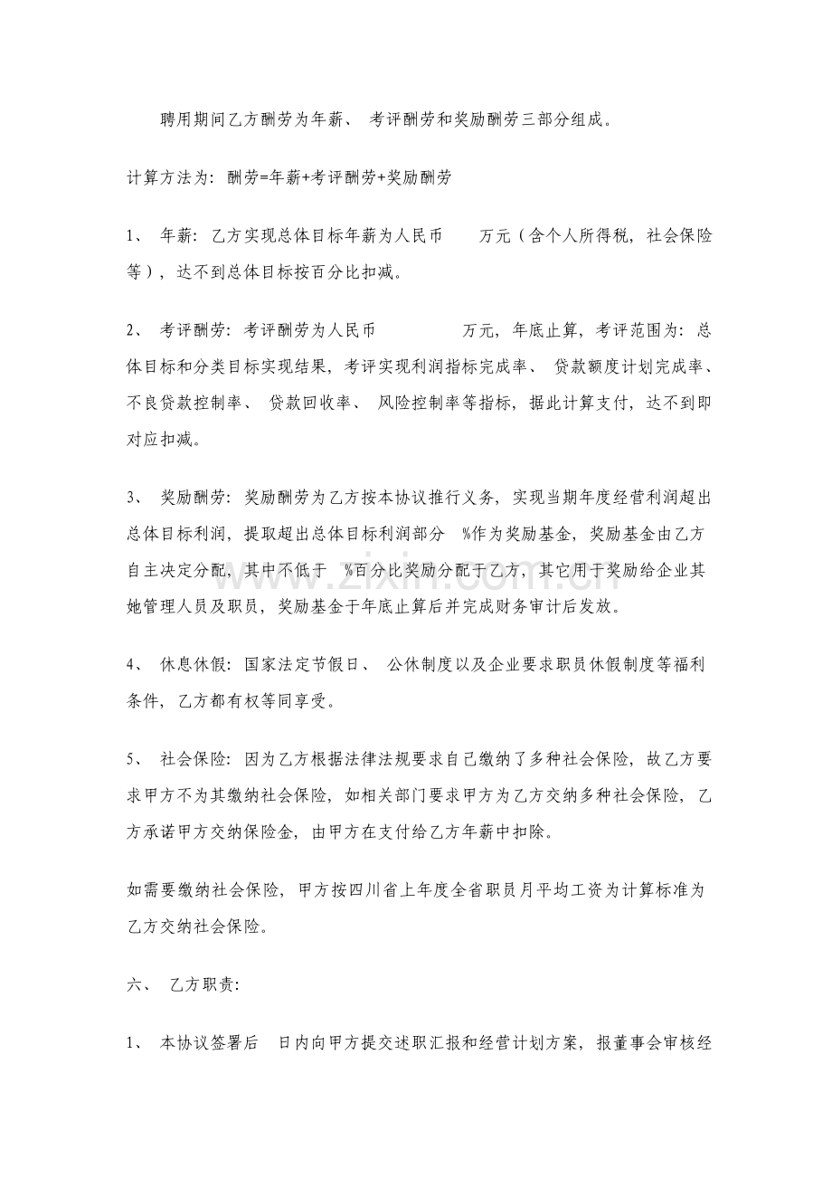 7、 聘用经营时间, 不得私自以甲方名义进行贷款, 企业经营活动所需贷款须按甲方董事会同意同意方法进行;