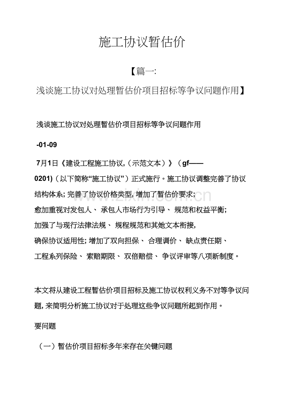 【篇一: 浅谈施工协议对处理暂估价项目招标等争议问题作用】