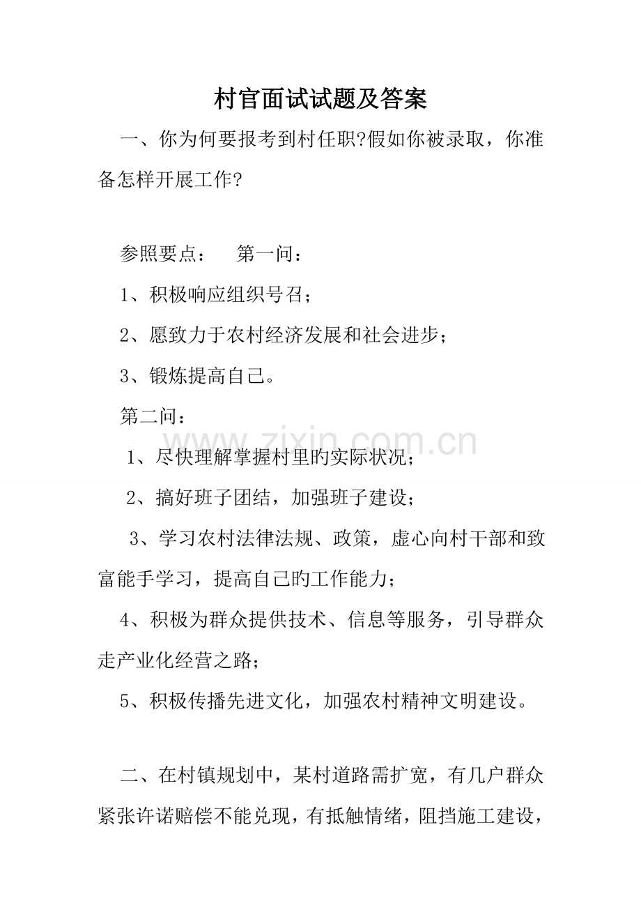 一、 你为何要报考到村任职?假如你被录取,你准备怎样开展工作?