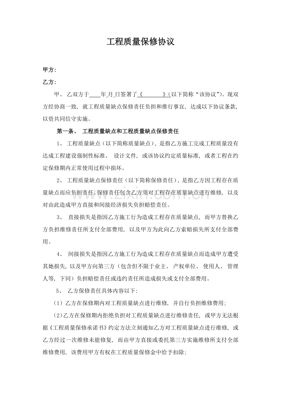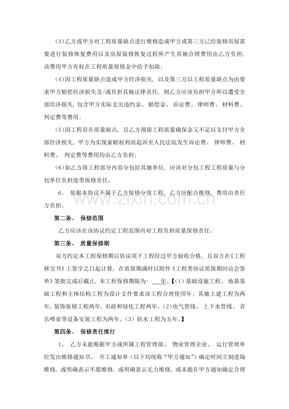 2、 保修责任内容根据《工程质量保修协议》第一条约定实施;