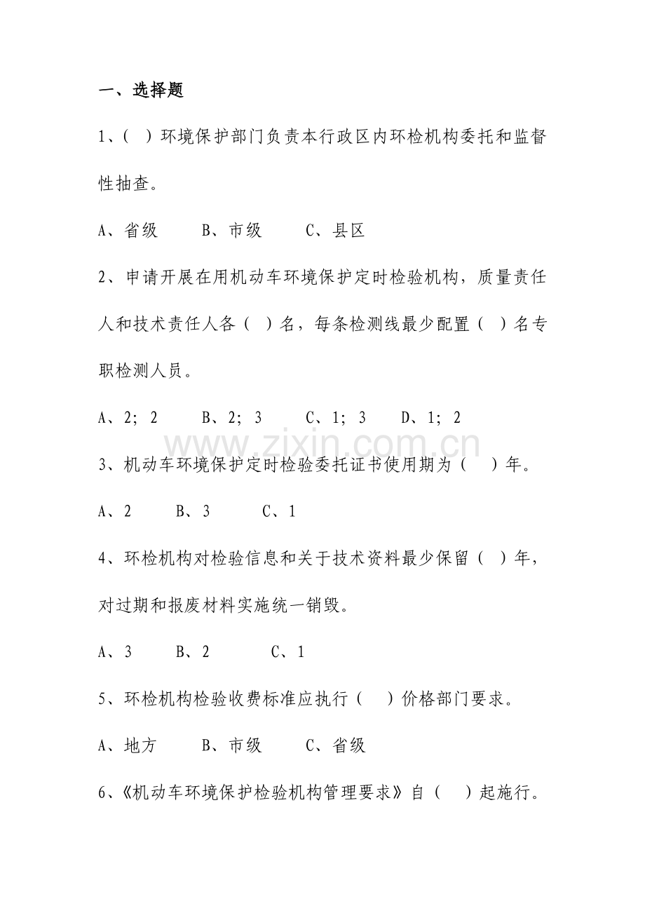 C、机动车环境保护检测机构 D、交通管理部门