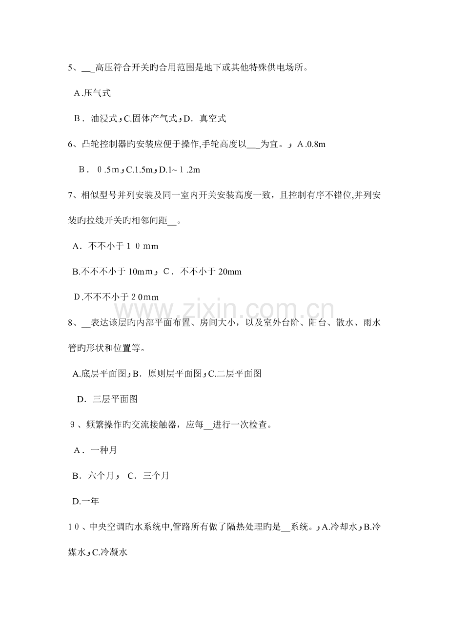 6、凸轮控制器旳安装应便于操作,手轮高度以__为宜。ﻭ A.0.8m