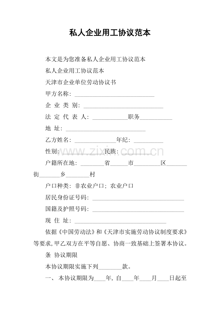 二、 本协议为无固定时限, 自____年____月____日始, 其中试用期为____月。