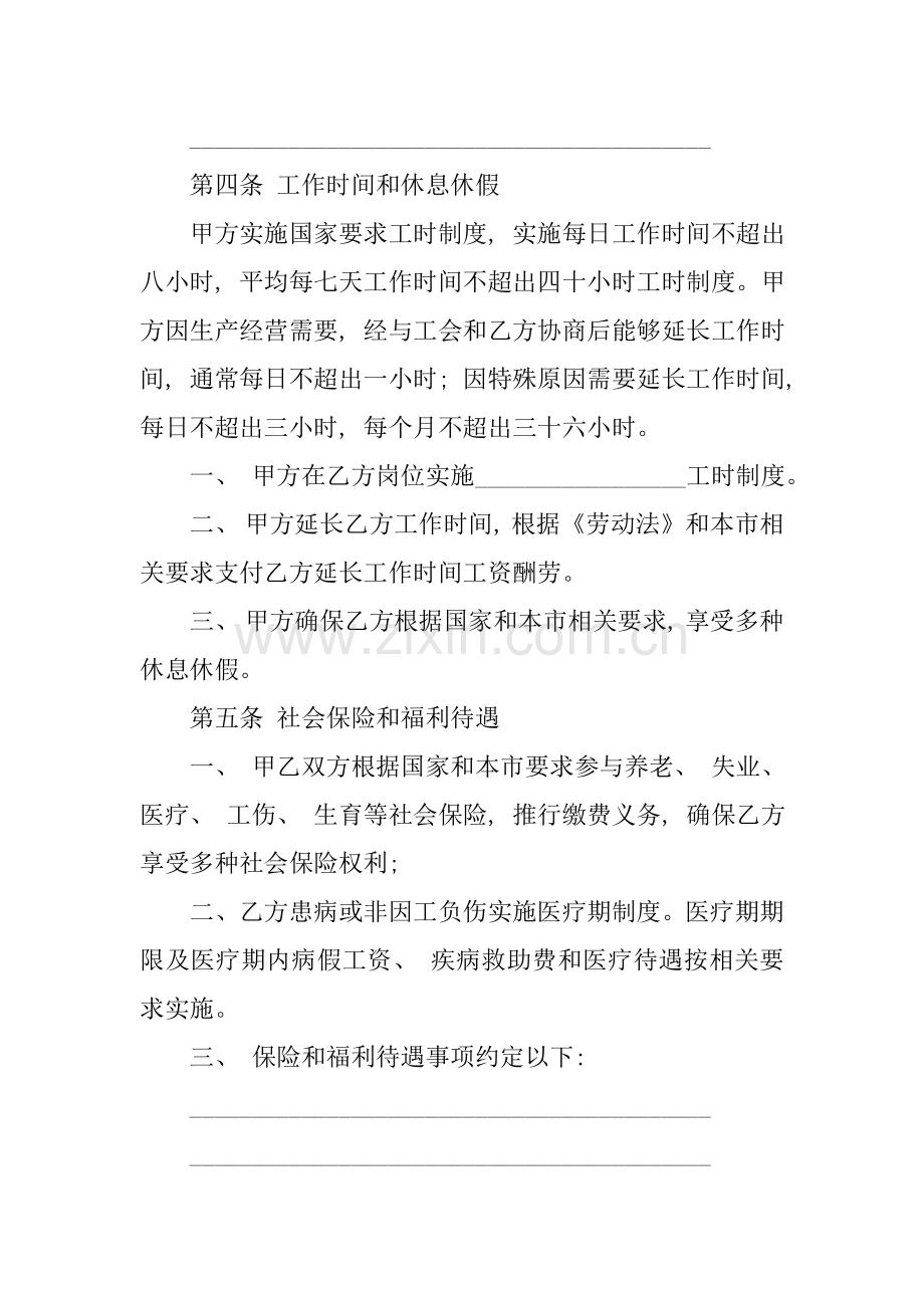 二、 甲方延长乙方工作时间, 根据《劳动法》和本市相关要求支付乙方延长工作时间工资酬劳。