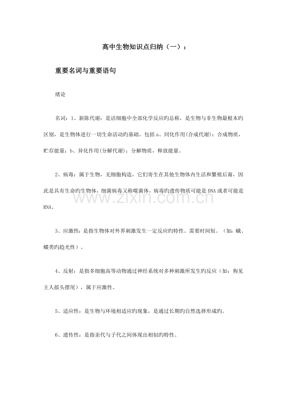 高中生物知识点归纳(一):
