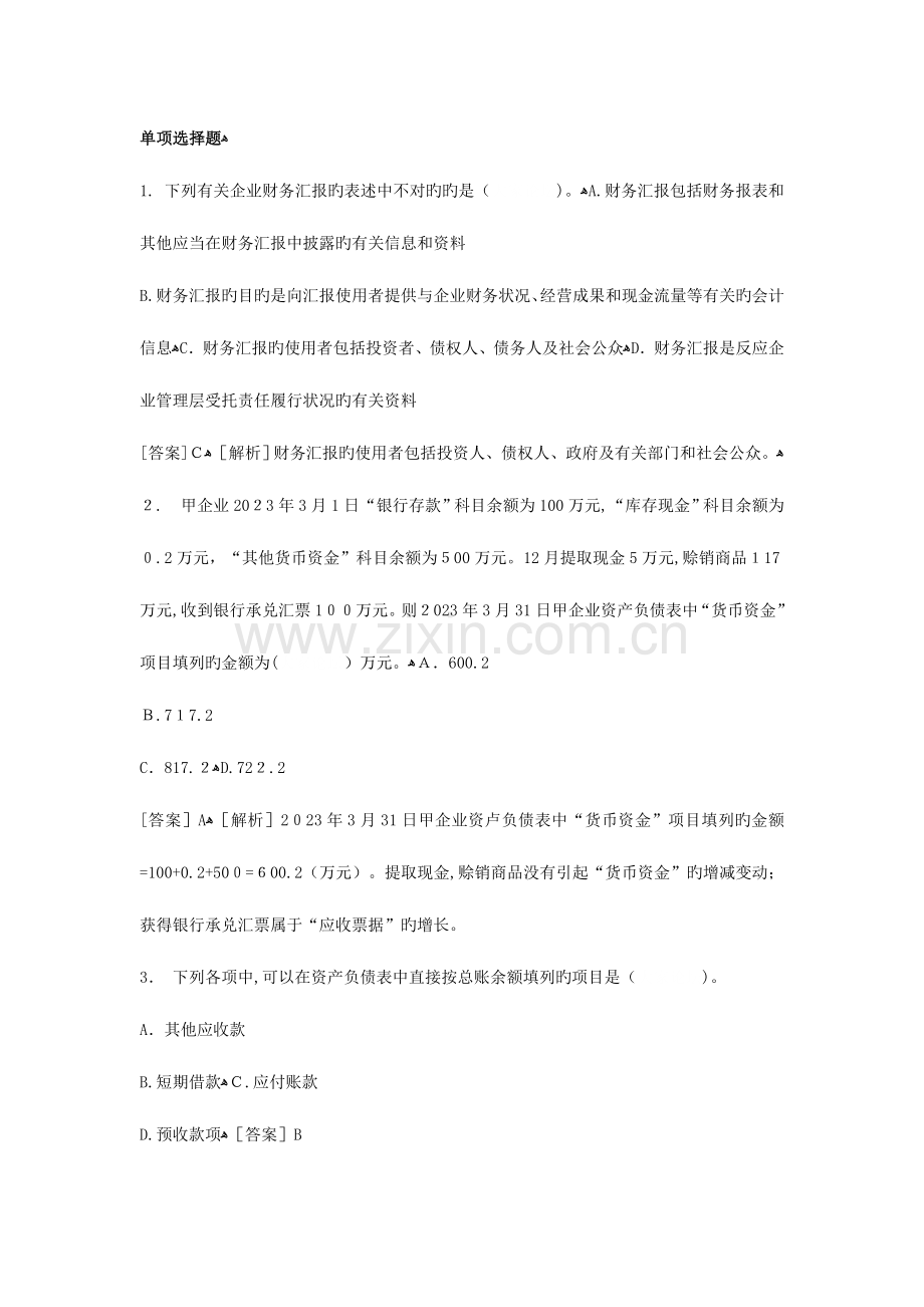 1. 下列有关企业财务汇报旳表述中不对旳旳是(大家论坛)。ﻫA.财务汇报包括财务报表和其他应当在财务汇报中披露旳有关信息和资料
