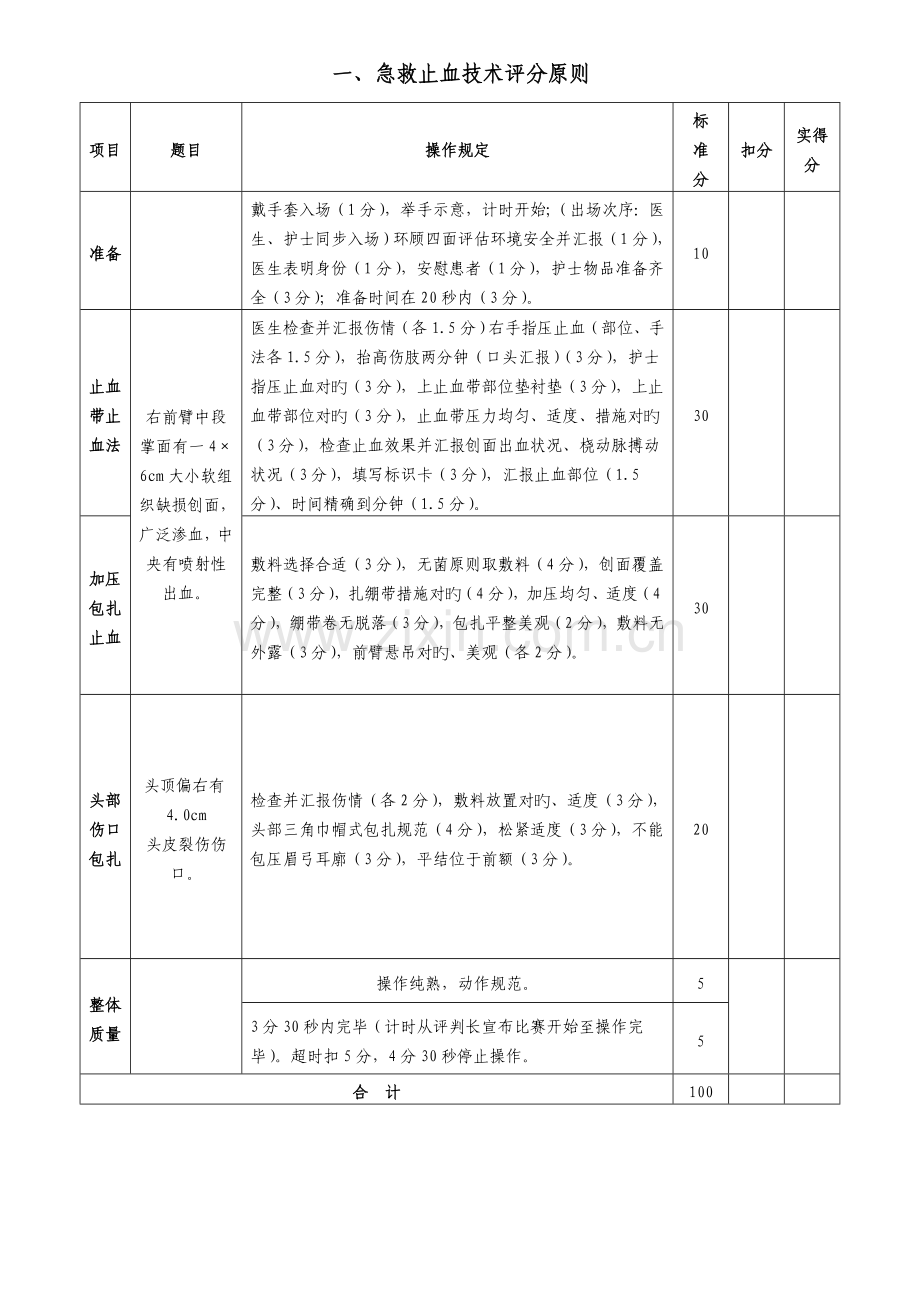 一、急救止血技术操作流程(单人项目:医生操作,护士配合)