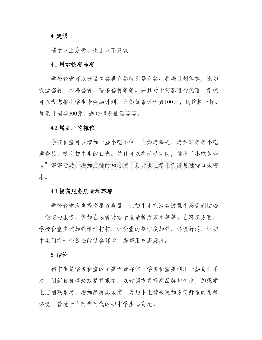 学校食堂的目标消费者是初中生,因此需要了解初中生的消费行为、喜好和需求。通过对初中生进行调查和分析,得出初中生较为喜欢的食品有: