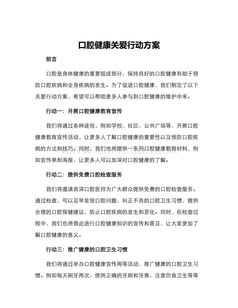 口腔是身体健康的重要组成部分,保持良好的口腔健康有助于预防口腔疾病和全身疾病的发生。为了促进口腔健康,我们制定了以下关爱行动方案,希望可以帮助更多人参与到口腔健康的维护中来。