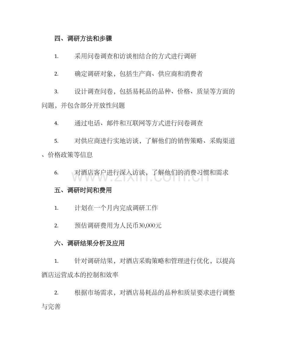 3. 设计调查问卷,包括易耗品的品种、价格、质量等方面的问题,并包含部分开放性问题