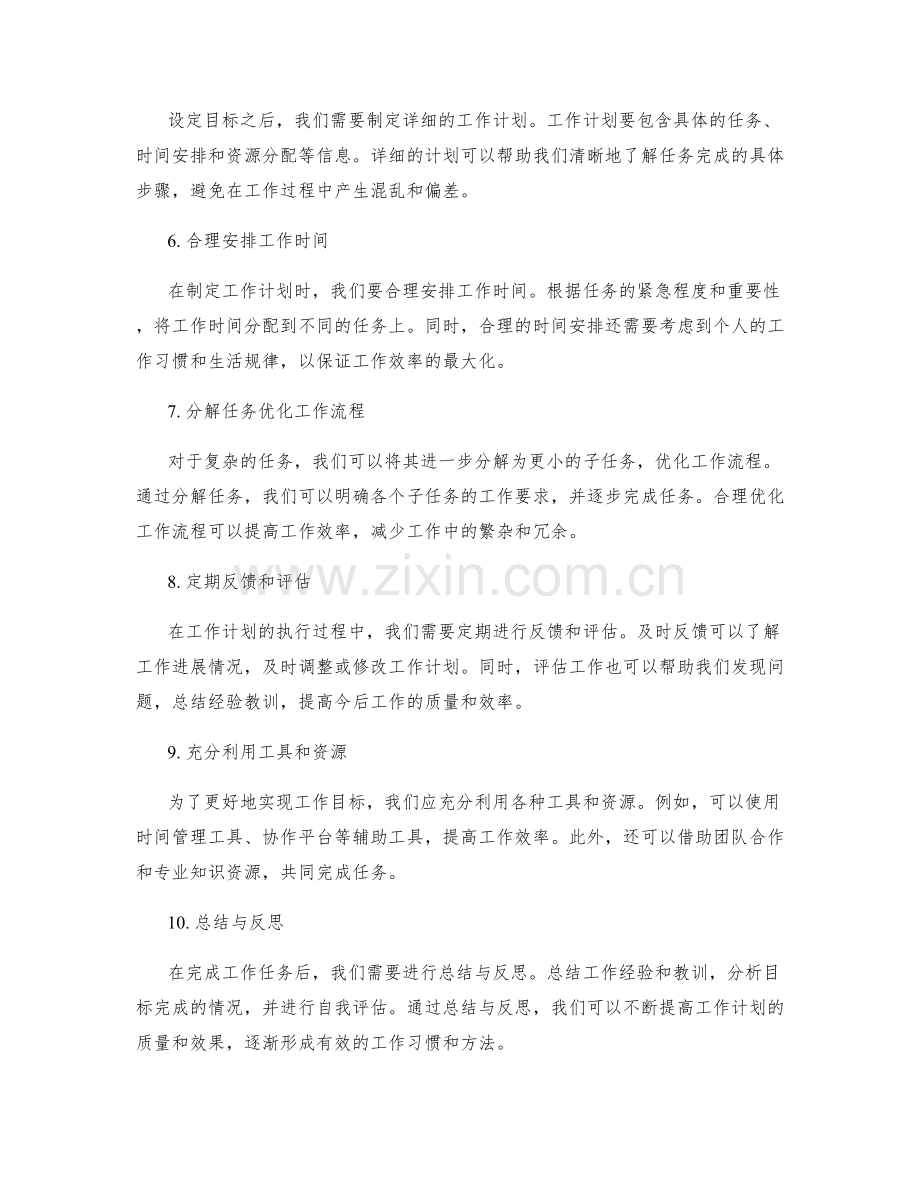 设定目标之后,我们需要制定详细的工作计划。工作计划要包含具体的任务、时间安排和资源分配等信息。详细的计划可以帮助我们清晰地了解任务完成的具体步骤,避免在工作过程中产生混乱和偏差。