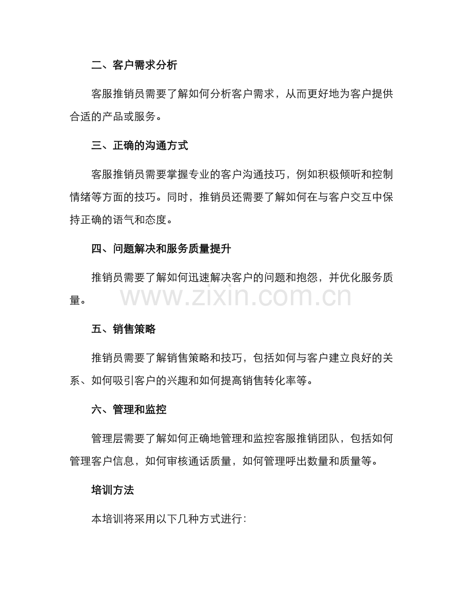 客服推销培训方案