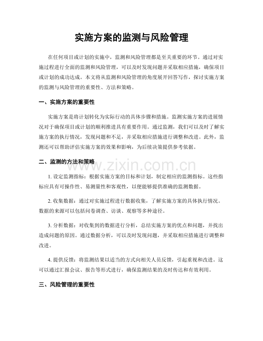 实施方案的监测与风险管理