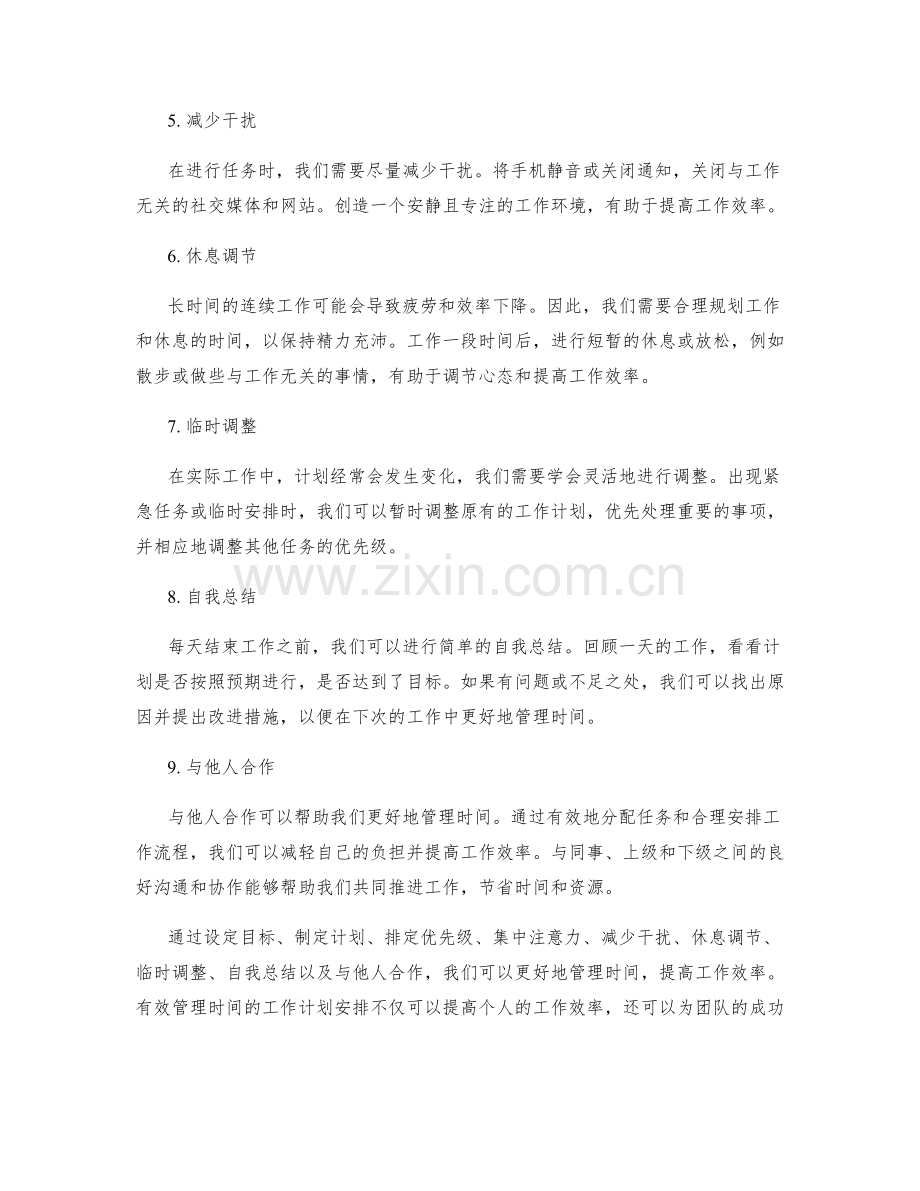 通过设定目标、制定计划、排定优先级、集中注意力、减少干扰、休息调节、临时调整、自我总结以及与他人合作,我们可以更好地管理时间,提高工作效率。有效管理时间的工作计划安排不仅可以提高个人的工作效率,还可以为团队的成功做出贡献。总结来说,时间管理是一个综合性的技能,需要不断地探索和提升,才能更好地适应快节奏的工作环境。