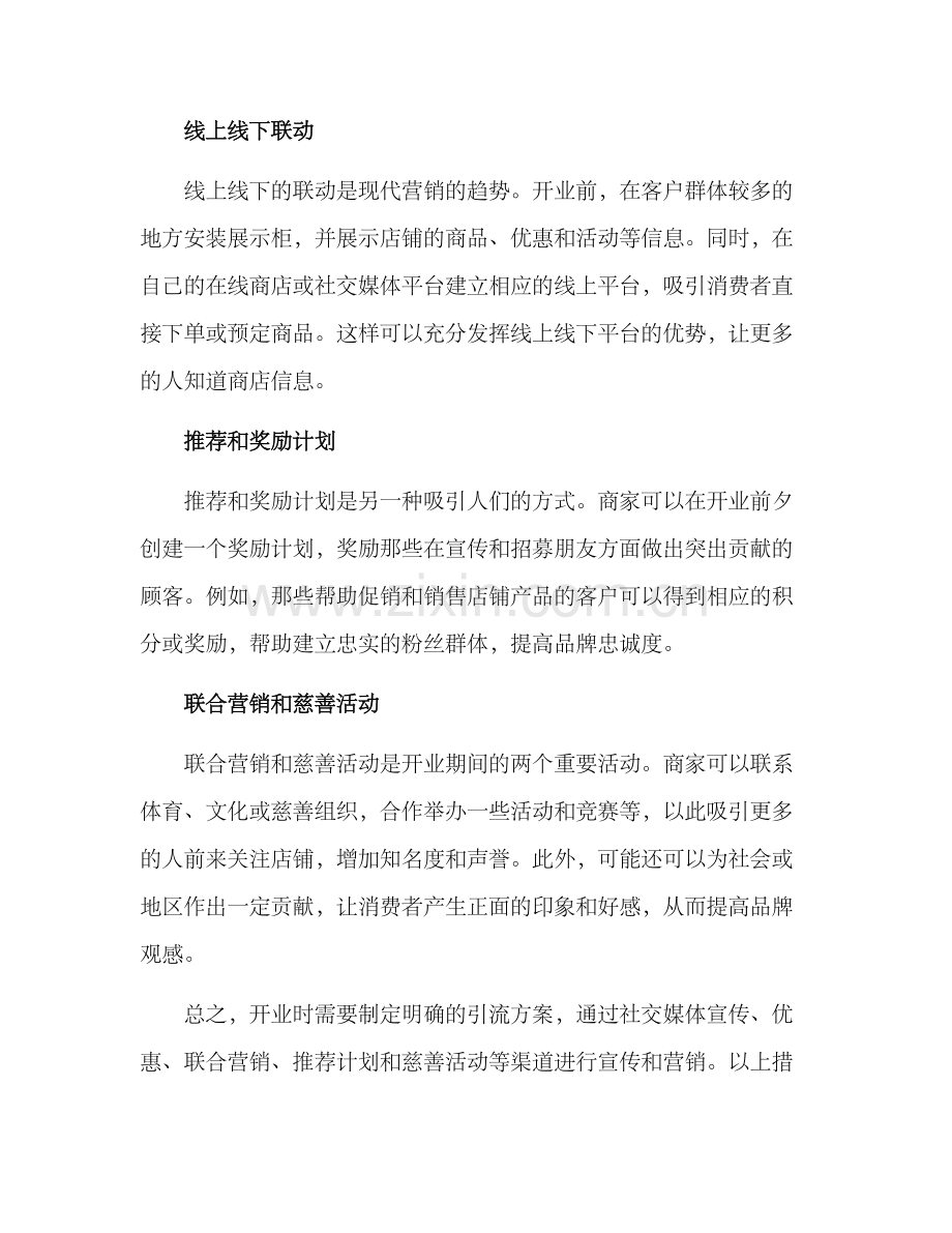 总之,开业时需要制定明确的引流方案,通过社交媒体宣传、优惠、联合营销、推荐计划和慈善活动等渠道进行宣传和营销。以上措施既能吸引新客户,又可以增加品牌忠诚度,为未来的发展打下坚实的基础。