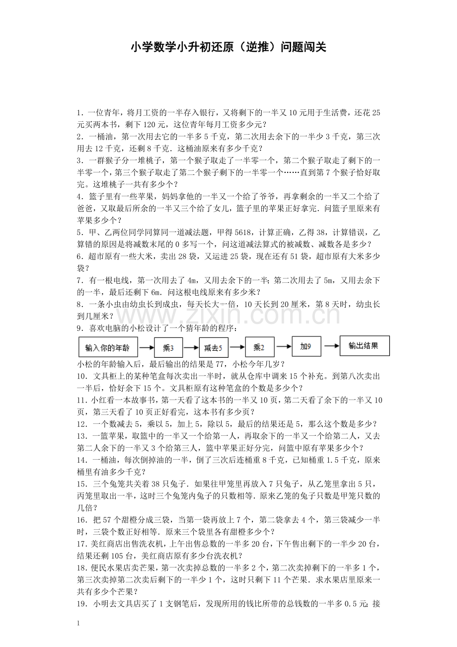 小学数学小升初还原(逆推)问题闯关