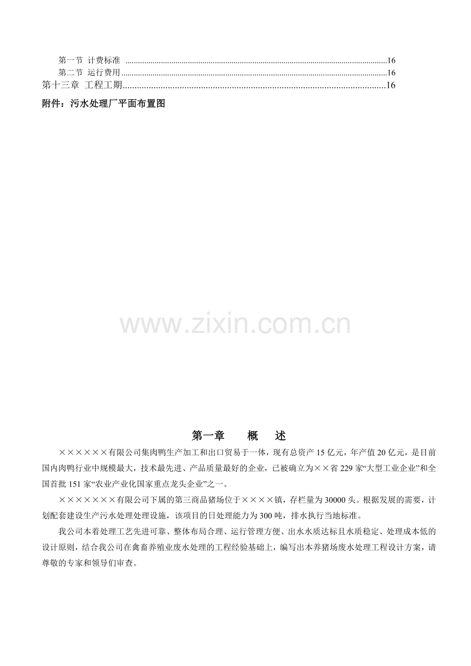 1、 该公司养猪场废水处理工艺的设计。